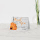 Tarjetas de agradecimiento de boda personalizadas rústicas de campo con margarita gerber naranja con los nombres de la novia y el novio y la fecha de la boda. Estas tarjetas están en blanco por dentro con una margarita naranja en la esquina inferior en el interior.