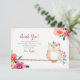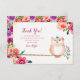 Tarjetas de agradecimiento de búho en un árbol. Este diseño presenta un búho con textura de acuarela y flores brillantes. Agregue su texto personalizado para crear su propia invitación especial. Para suministros adicionales de fiesta de salvaje coordinada, visite MetroEvents en Zazzle. Para diseños personalizados, por favor contacte Metro-Event.com.