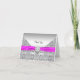 Elegante lazo de satén rosa brillante con centro de joya de diamante con tarjeta de agradecimiento de encaje de diamante plateado superpuesto.