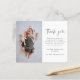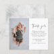Tarjeta de agradecimiento de foto de bebé con guión simple. Haga clic en el botón de edición para personalizar fácilmente esta plantilla de agradecimiento con sus propios detalles y fotografía.