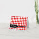 Estas elegantes tarjetas de agradecimiento para todo propósito están diseñadas con "gracias" en letras blancas en itálica en una etiqueta de flecha negra sobre un patrón de houndstooth rojo y blanco, con un acento gris. Este patrón es una elección elegante para bodas, fiestas de compromiso y aniversarios.