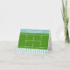 Tarjetas de agradecimiento con tema de tenis con cancha de tenis en fondo a rayas azul claro.