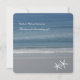 Tarjetas de agradecimiento del océano de estrellas de mar. Las tarjetas cuadradas y planas tienen fotografía de olas del océano y playa con texto blanco y dos estrellas de mar en la parte frontal. Personalice esta tarjeta personalizada con los nombres de los recién casados y un mensaje de agradecimiento.