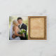 Esta tarjeta de agradecimiento para foto de boda rústica de otoño, en colores otoñales de naranja, óxido, dorado y marrón tiene imágenes de tres hojas de arce secas con un lazo de cuerda IMPRIMIR y cinta marrón rojiza oscura IMPRIMIR, y un fondo de saco de arpillera FALSA con una superposición de aspecto de papel quemado envejecido que coincide con la invitación de boda que se muestra a continuación. También puede seleccionar un tamaño más grande de 5 "x7". Si hay otros artículos coincidentes que necesita, por favor envíe su solicitud a niteowlstudio@gmail.com.