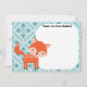 Los niños pueden enviar su propio mensaje de agradecimiento con estas tarjetas de agradecimiento de animales del bosque. Utilice los campos en blanco para personalizar fácilmente el texto en la parte superior de las tarjetas. Hay espacio para que los niños escriban su propio mensaje, hagan un dibujo o dicten su mensaje de agradecimiento a mamá o papá. Estas tarjetas presentan un lindo zorro rojo en color naranja rojizo oscuro sobre un fondo azul con patrones. Estas tarjetas de panel plano tienen una parte posterior con patrón de zig-zag de chevron naranja. Estas tarjetas se coordinan con otros artículos de nuestra colección Woodland Whimsy.