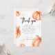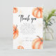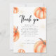 Tarjetas de agradecimiento modernas para baby shower con calabaza naranja, con la palabra "Gracias" calabaza naranja acuarela dorada signo de juegos de baby shower de Halloween de otoño. Tipografía de caligrafía minimalista moderna.