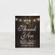 Tarjetas de agradecimiento náuticas de ancla rústica vintage: personalice con una foto suya. El diseño presenta un fondo de granero rústico o de madera con luces de cuerda y un ancla dorada elegante.
