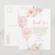 Personalice esta tarjeta postal de agradecimiento para Baby Shower con detalles de su baby shower de manera fácil y rápida, simplemente presione el botón personalizar para reorganizar y dar formato al estilo y ubicación del texto. Con hermosas rosas rosadas de acuarela, follaje verde y dorado delicado y globos rosados de acuarela. ¡Hay artículos coincidentes disponibles en la tienda!