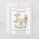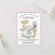 Tarjetas de agradecimiento para baby shower de safari de niña con adorables animales de bebé niña con flores rosadas en un fondo de vegetación y puntos rosados. Estas tarjetas de agradecimiento para baby shower de safari de niña se personalizan fácilmente para su evento simplemente agregando sus detalles.