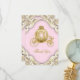 Tarjeta de agradecimiento de estilo plano para baby shower de princesa en rosa y dorado con un elegante carruaje de princesa dorado y fondo de remolino dorado. Esta hermosa tarjeta de agradecimiento de princesa en rosa y dorado se personaliza fácilmente para su evento simplemente agregando su mensaje en el estilo de letra y color, y redacción de su elección, o déjelo en blanco y agregue su mensaje escrito a mano cuando lleguen. También puede cambiar el color de fondo.
