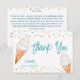 Es una tarjeta de agradecimiento para despedida de soltera con helado y sprinkles.