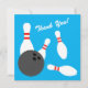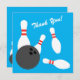 Tarjetas de agradecimiento para fiesta de cumpleaños de bolos Square. Diseño divertido para la celebración en la bolera.