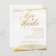 Tarjetas de agradecimiento para mesa con caligrafía real | Con hoja de oro y mármol: Coloque estas hermosas tarjetas planas en las mesas de su recepción de boda para agradecer a sus invitados por estar allí para celebrar con usted. Este diseño presenta caligrafía real en oro.