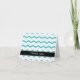 Tarjetas de agradecimiento de moda personalizadas diseñadas con un patrón de zig-zag chevron alternado de turquesa y gris, "gracias" en texto de escritura blanca sobre una franja negra, y personalizadas en el interior con su propio mensaje personalizado de gratitud. También puede eliminar fácilmente el texto de la plantilla interior para dejar estas tarjetas en blanco para escribir a mano sus sentimientos de agradecimiento. Este patrón elegante y el uso del color hacen que estas tarjetas sean perfectas para las fiestas de bebé y las despedidas de soltera.
