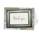 Estas tarjetas de agradecimiento rústicas verdes del sur del país están inspiradas en el sur con un marco ornamentado verde "gracias" impreso en verde, sobre una imagen de fondo de madera con pintura descascarada. El interior está personalizado con su propio mensaje de agradecimiento en verde y gris caqui. También puede eliminar fácilmente el texto de la plantilla interior para dejarlo en blanco para escribir a mano sus propios sentimientos de gratitud. Su encanto rústico vintage hace que estas tarjetas sean perfectas para bodas y celebraciones de baby shower.