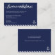 Alojamiento boda náutico tarjetas de visita con rayas azul marino y blanco, ancla blanca y personalizado de texto blanco impreso en fondo azul marino