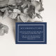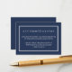 Desliza estas modas, tarjetas pequeñas en tus invitaciones nupciales para hacer saber a los huéspedes de la ciudad de cualquier acuerdo de hotel o código de grupo, junto con información de contacto del hotel. Las tarjetas de color azul marino con encanto incluyen letras elegantes de bloques blancos. Coordina con nuestra suite de invitados a la boda de las mareas de la marina.