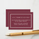 Desliza estas modas, tarjetas pequeñas en tus invitaciones nupciales para que los huéspedes conozcan los arreglos de hoteles o códigos de grupo. Las tarjetas enriquecidas de ciruelas violetas tienen elegantes letras en bloques blancos. Coordina con nuestra suite de invitados a la boda de cerezos en flor.