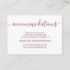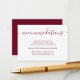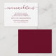 Puedes poner estas elegantes tarjetas de petite burdeos en tus invitaciones de boda para que los huéspedes del pueblo sepan de cualquier acuerdo de hotel o códigos de grupo. Personalice fácilmente en línea esta tarjeta de gabinete moderna. Elementos coincidentes disponibles. Las solicitudes de los personalizados son bienvenidas.