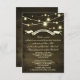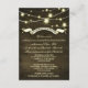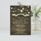 Fondo de madera y luces de cuerda en las tarjetas de alojamiento boda de granero.