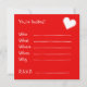 Invitaciones y sobres de San Valentín personalizados o en blanco Las invitaciones y la tarjeta de bienvenida de San Valentín invitaciones de fiesta de San Valentín para la familia de amigos hombres mujeres Recién nacido Envolvían compromiso de aniversario y Bodas Invitaciones y sobres de amor personalizados Haga clic en "Personalizar" para agregar texto Elegir fuentes y colores Personalizados Personalizados Cartas de San Valentín Invitaciones a sobres de amor personalizados Tentativa o Blank Loving Hearts Tarjetas Tu Nombre Aquí Valentine's Party Invitation RSVP, Cards & Love Gifts Diseño de Kim Hunter. Visita www.kimhunter.ca para ver más artículos de diseño de impresiones de tarjetas de regalo y Keepsakes en línea.