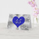 Tarjetas de aniversario de bodas de 45 años azules y económicas entregadas directamente en la casa de la pareja o en la tuya en 3 tamaños. Impresas brillantemente con un corazón de color zafiro azul de aniversario sobre remolinos plateados y fondo. Puedes elegir personalizarlo en el interior o mantener nuestro mensaje de "Feliz aniversario de bodas" o agregar tu mensaje y firmar con tu nombre(s). LLAMA a Linda para cambios de diseño, regalos de aniversario de 45 años coincidentes, etc.