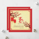 Bonita tarjeta roja y dorada con ramas floridas y farolillos colgados de China. Una forma perfecta de enviar saludos de Año Nuevo a amigos y familiares. (FP)