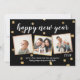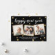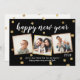 Envía buenos deseos en el año nuevo con esta elegante tarjeta de collage de 3 fotos que presenta confeti grueso de lámina dorada falsa. Viene con un patrón coincidente en la parte posterior