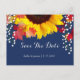 Tarjetas postales de anuncio de boda de girasoles azul marino