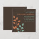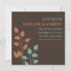 Haga saber a sus amigos y seres queridos que se van a casar con estos anuncios de anuncio de boda modernos y elegantes que presentan ramas de árboles/hojas de color naranja y azul turquesa sobre un fondo marrón chocolate. Diseño ultra moderno con líneas y fuente limpias y precisas.