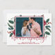Tarjetas de anuncio de embarazo de Navidad con foto. ¡Padres expectantes! Tarjeta con tipografía moderna escrita a mano en rojo con el texto "¡Estamos esperando!" para compartir la feliz noticia con familiares y amigos en la temporada navideña. Cuenta con ramas de pino florales blancas de acuarela burgundy, bayas rojas con arreglo de acebo. Dentro del marco puedes cambiar la foto por la tuya propia. Puedes personalizar el diseño reemplazando los textos y la foto horizontal. #3347 Si necesitas ayuda o artículos coincidentes, ¡por favor contáctame!