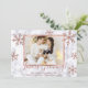 Tarjetas de anuncio de embarazo de Navidad con foto. ¡Padres expectantes! Tipografía moderna escrita a mano en rosa "¡El amor está creciendo!" tarjeta para compartir tus felices noticias con familiares y amigos en la temporada de fiestas. Cuenta con un marco de copo de nieve con brillo de falso oro rosa sobre fondo de mármol gris blanco. En el centro, una plantilla de foto horizontal con marco de lámina de oro rosa. En la parte posterior, fondo de lámina de falso oro rosa. Puedes personalizar el diseño reemplazando los textos y la foto vertical. #3349 Si necesitas ayuda o artículos coincidentes, ¡por favor contáctame!