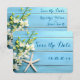 Tarjetas de invitación de anuncio de fecha de bodas con estrellas de mar redondas pequeñas (5 pulgadas por 3,5 pulgadas) con orquídeas y texto y foto personalizables - puedes agregar tus fotos y cambiar el texto