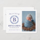 Moderno y simple monograma / bebé azul correa anuncios de nacimiento!
