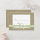 El aspecto de Burlap y Green Bow se imprimen en estas rústicas tarjetas de descanso de estilo boda. Invitaciones coincidentes, texto personalizar según sea necesario. Añada los nombres de la novia y del novio con un monograma y una fecha de boda al dorso. Este producto está impreso. Este producto no incluye una auténtica arpillera ni un arco real.