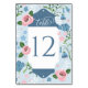 Este plan de asientos de tarjetas de mesa de boda presenta una estética art déco azul claro con encantadoras rosas rosadas y flores silvestres. Personalice esta plantilla editable con sus propios números de mesa y fecha de boda para una apariencia de recepción cohesionada. Perfecto para un jardín de primavera o un tema floral caprichoso.
