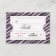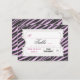 Un diseño glamuroso en forma de entrada VIP Admission, con una estampada de cebra de moda en negro y violeta, hace una gran tarjeta de mesa en tu fiesta VIP Sweet 16 o Quinceanera!