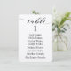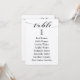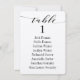 Letra de caligrafía negra con tipografía florida sobre papel blanco crujiente para tarjetas de cuadro de asientos.
