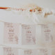Las tarjetas de asientos de boda se caracterizan por el estilo boho, la obra de arte floral, los colores neutros terrosos y beige, con una mezcla de diferentes estilos de fuente, a menudo en diferentes tamaños, para crear un aspecto único y ecléctico que hace que estas invitaciones sean estéticamente naturales.