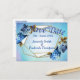 Tema de boda con hortensias de acuarela en tonos azules y hojas de bronce, algunos con adornos de marco geométrico dorado para personalizar. Este diseño de papelería moderna es perfecto para cualquier celebración al aire libre en un jardín de verano como una boda.