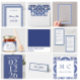 Tarjetas de aviso de boda costera azul y blanca
