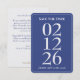 Tarjetas de aviso de boda mediterránea costera azul y blanco. Decoraciones y invitaciones de tema terracota naranja quemada para boda al aire libre orgánica.