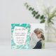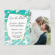 Postales de aviso de boda con diseño geométrico de mármol turquesa espuma de mar y blanco, y patrón dorado falso impreso. Este diseño clásico y sofisticado es perfecto para la pareja que se casa trendy y elegante. Personalice con su propio mensaje en la parte delantera, así como una inicial de monograma personalizada en la parte posterior. Todo el diseño de impresión de fotos.