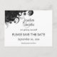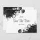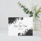 © Sunny Mars Designs - Floral Hibiscus: Tarjetas de aviso de boda en negro sobre blanco - Tarjeta de aviso de boda gótica personalizable moderna, elegante, con estilo, chic con hermoso y precioso diseño floral tropical de hibisco negro.