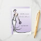 Novia para ser tarjetas de consejo, con una elegante novia en un fondo morado. Las tarjetas de consejo para las duchas de novias son una forma divertida y personal para que los clientes den su consejo para un matrimonio feliz. ¡La novia apreciará estas palabras de sabiduría en los años venideros!