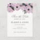 Tarjetas postales de aviso de fecha de boda floral de acuarela púrpura de primavera