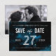 Para la pareja cuya historia de amor está escrita entre las estrellas...unas tarjetas de aviso de fecha de boda con tema de galaxia seguro que llamarán la atención de todos. Los detalles del texto son personalizables y están sobre un fondo espacial en negro, azul y blanco.