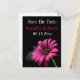 Set de Invitación de Boda de Hot Pink Fuschia Gerber Daisy sobre fondo negro con impresión a todo color en AMBOS LADOS.