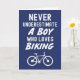 **Título:** Tarjetas de Ciclismo Azules Marinas Lindas para Bebés Niños - Nunca Subestimes a un Niño que Ama el Ciclismo