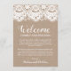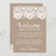 Utilice nuestras rústicas tarjetas de bienvenida de hotel burlap and lace para darle la bienvenida a sus huéspedes fuera de la ciudad y hacerles saber más sobre su itinerario boda. Utilice la herramienta "Personalizar esta plantilla" de Zazzle para introducir la información de la ceremonia de su boda. Si necesita cambiar la ubicación de los cuadros de texto, el color de la fuente o el tamaño sólo tiene que hacer clic en el botón "Haga clic para más personalizares" para cambiar esas cosas. No olvide visitar nuestra amplia selección de elementos de coordinación, navegando por la colección de Bodas Burlap y Lace.